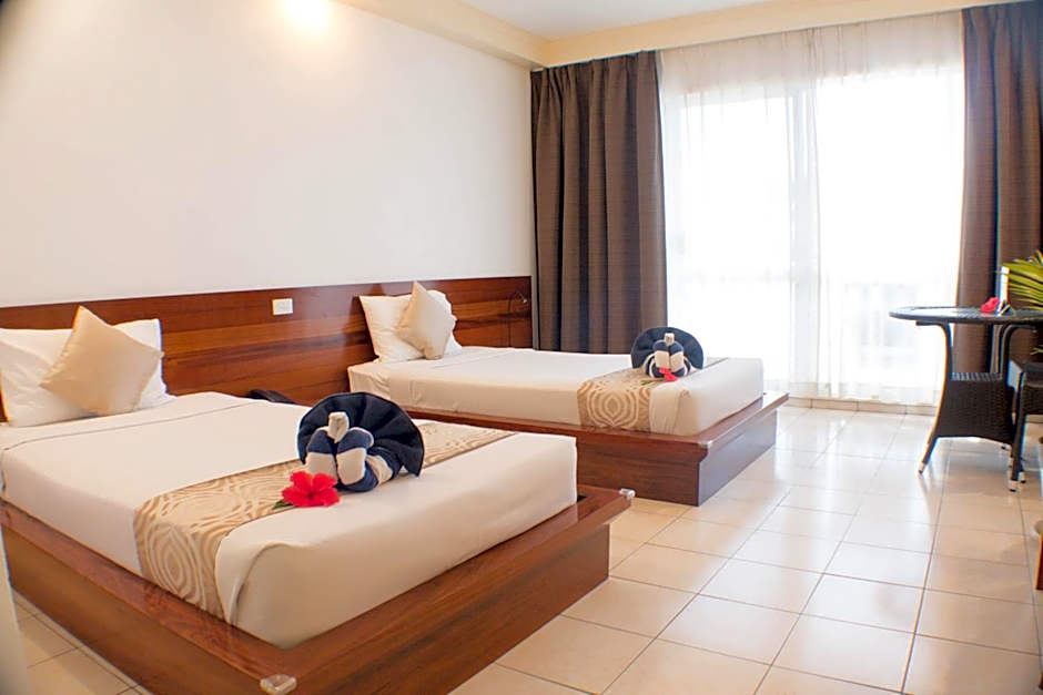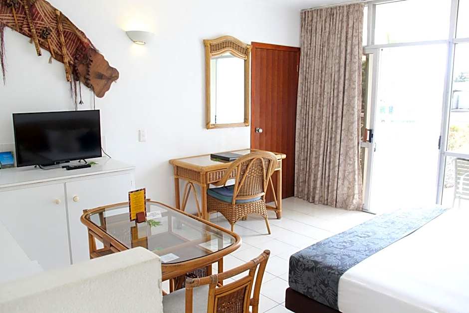 Fully air-conditioned room with balcony boasting views of the pool and bar area. It has a refrigerator, mini-bar and in-room safe. There is also a TV with in-house movies and cable channels.